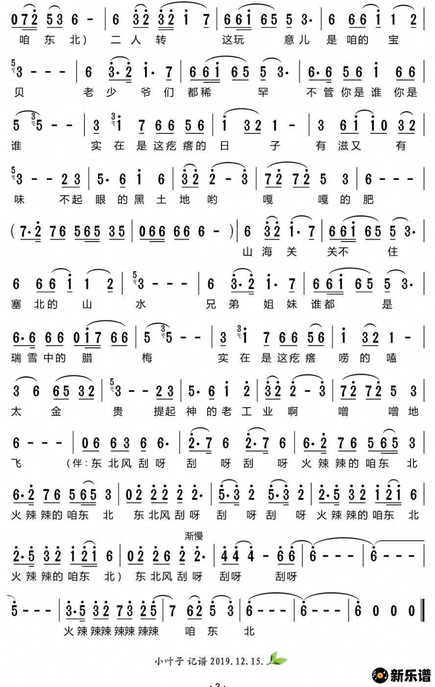 《火辣辣的咱东北》简谱 伊泓远-小叶子制谱