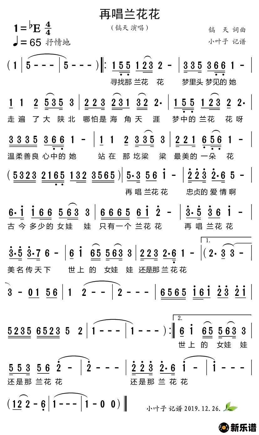 《再唱兰花花》简谱 镐天-小叶子制谱