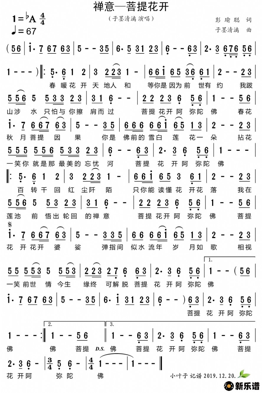 《禅意—菩提花开》简谱 子墨清漓-小叶子制谱