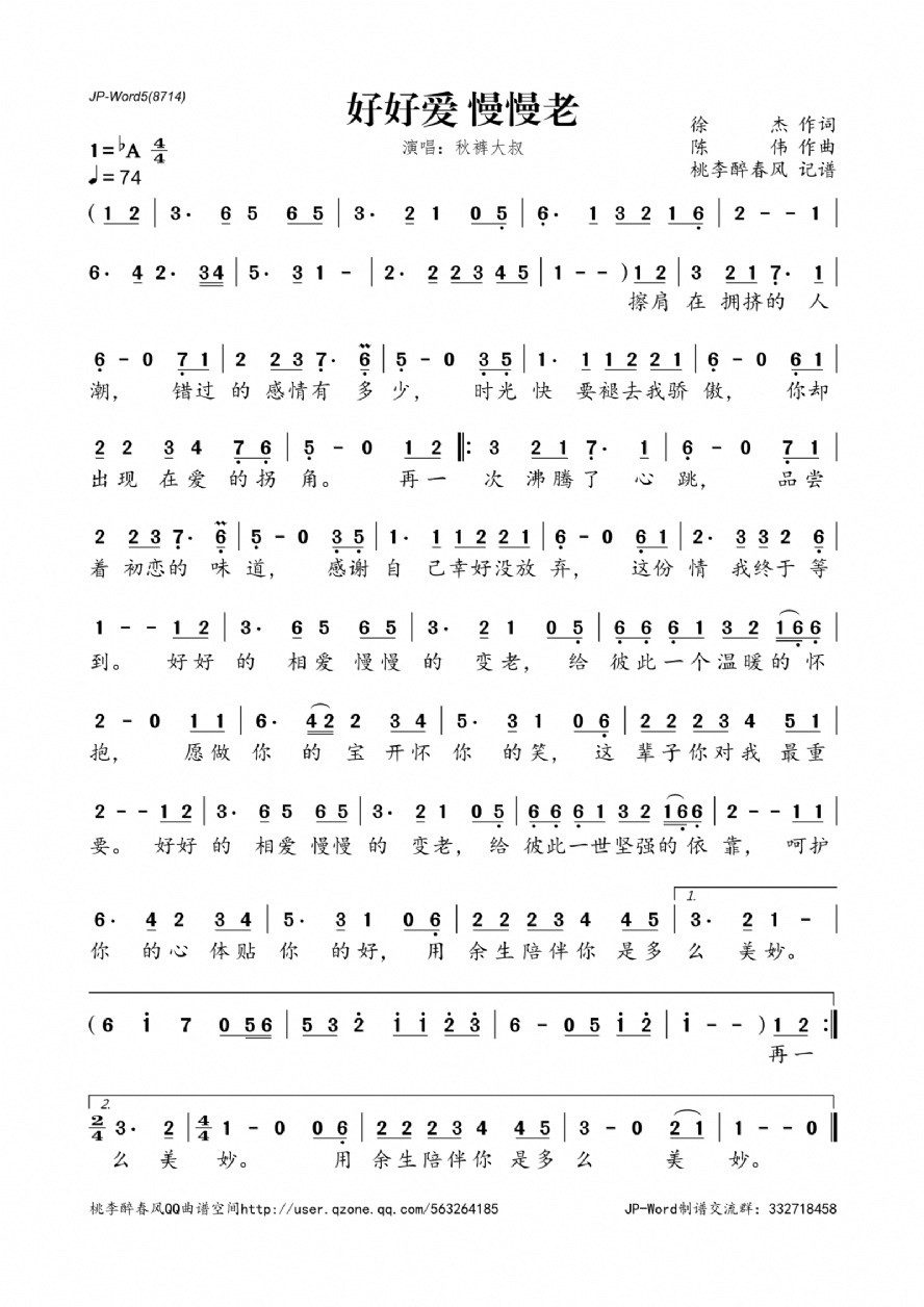 秋裤大叔 演唱的好好爱慢慢老歌词,好好爱慢慢老简谱.