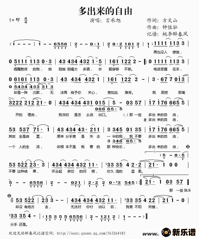 《多出来的自由》简谱 言承旭-桃李醉春风制谱