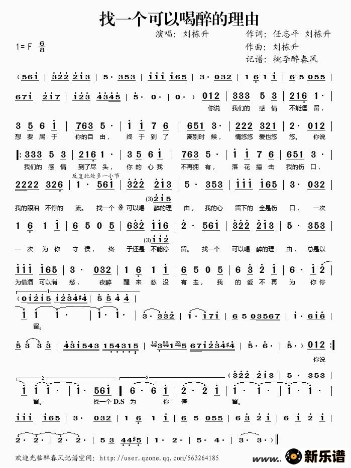 刘栋升演唱的找一个可以喝醉的理由歌词,找一个可以喝醉的理由简谱.