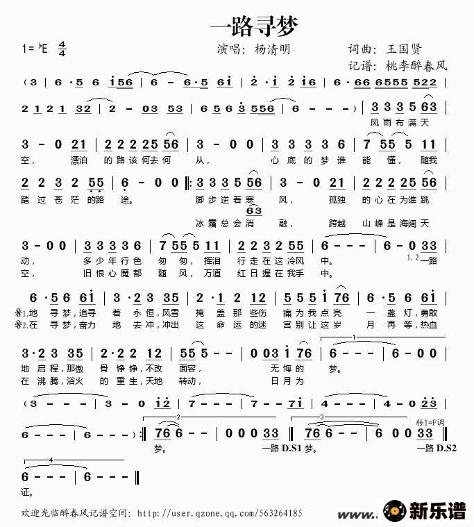 杨清明演唱的一路寻梦歌词,一路寻梦简谱.