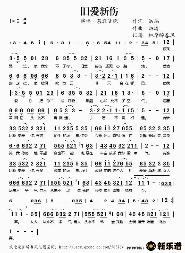 慕容晓晓演唱的旧爱新伤歌词,旧爱新伤简谱.