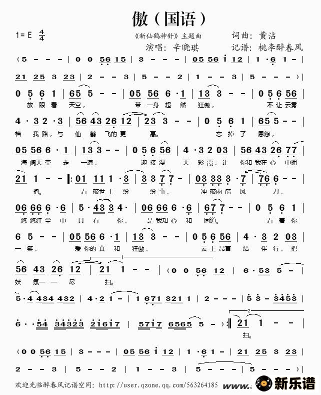《傲(《新仙鹤神针》主题曲 [国语])》简谱 辛晓琪-桃李醉春风制谱