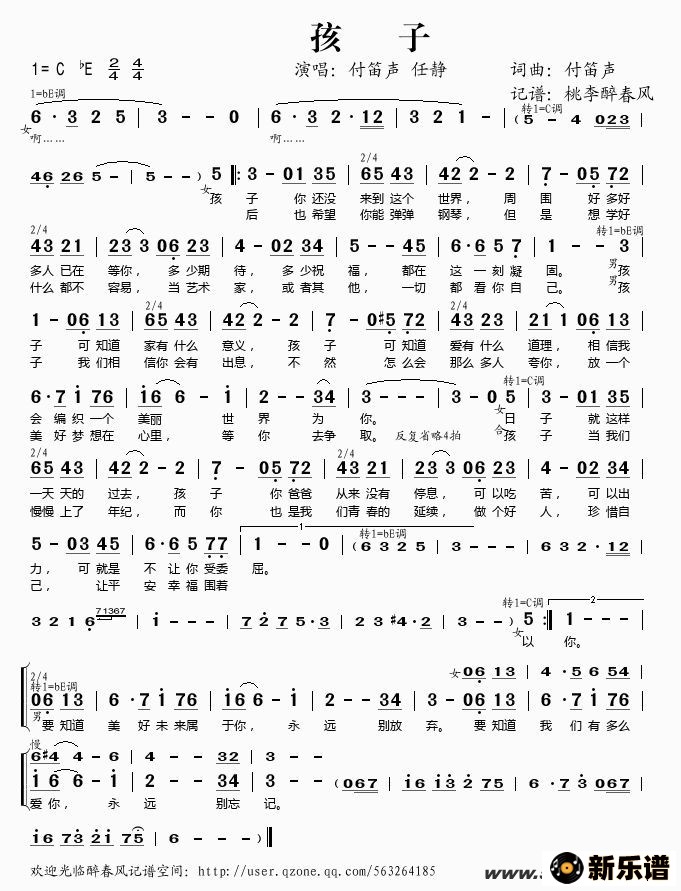 《孩子》简谱 付笛声、任静-桃李醉春风制谱