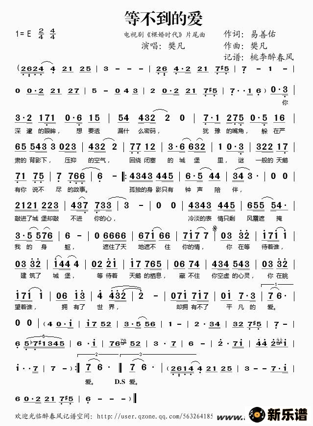 樊凡演唱的等不到的爱(电视剧《裸婚时代》片尾曲)歌词,等不到的爱(电视剧《裸婚时代》片尾曲)简谱.