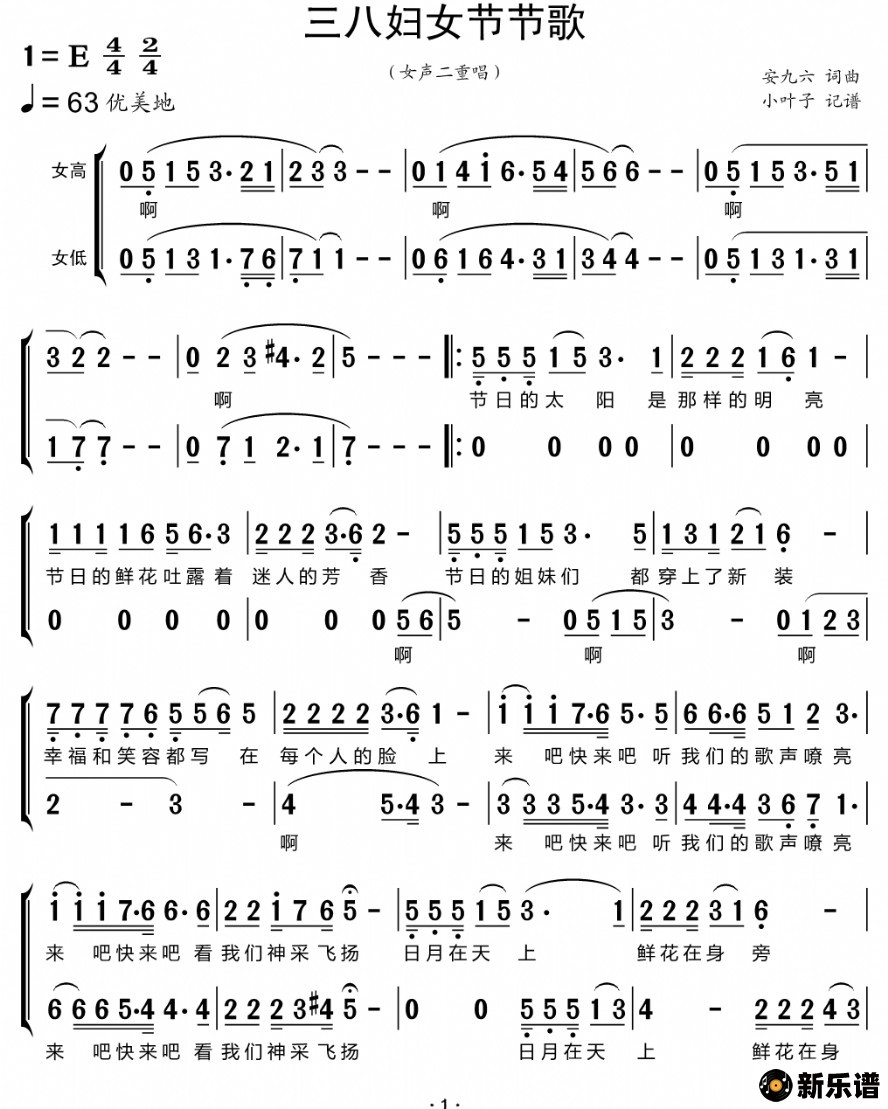 女声二重唱演唱的三八妇女节节歌歌词,三八妇女节节歌简谱.