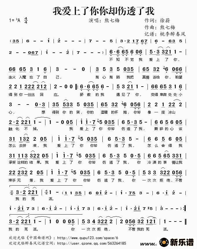 《我爱上了你你却伤透了我》简谱 熊七梅-桃李醉春风制谱