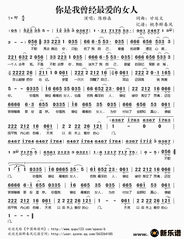 《你是我曾经最爱的女人》简谱 陈雅森-桃李醉春风制谱