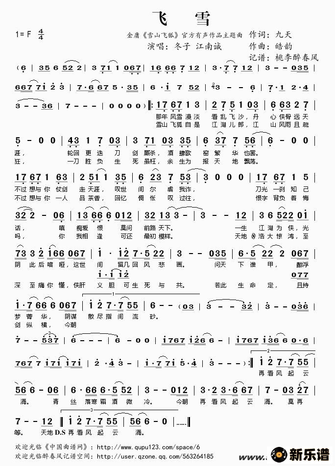 飞雪(金庸《雪山飞狐》官方有声作品主题曲)冬子 江南诚 冬子 江南诚演唱的飞雪(金庸《雪山飞狐》官方有声作品主题曲)歌词,飞雪(金庸《雪山飞狐》官方有声作品主题曲)简谱. 此简谱由新乐谱会员 桃李醉春风 上传