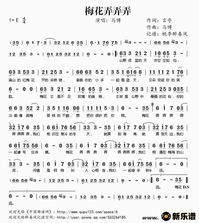 马博演唱的梅花弄弄弄歌词,梅花弄弄弄简谱.