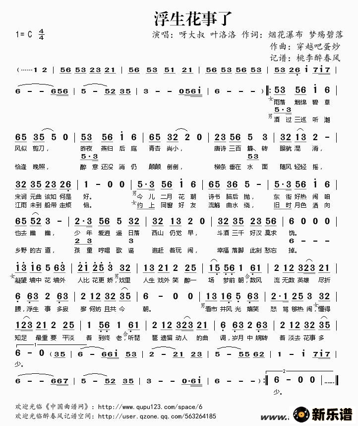 浮生花事了/呀大叔/叶洛洛 相关曲谱