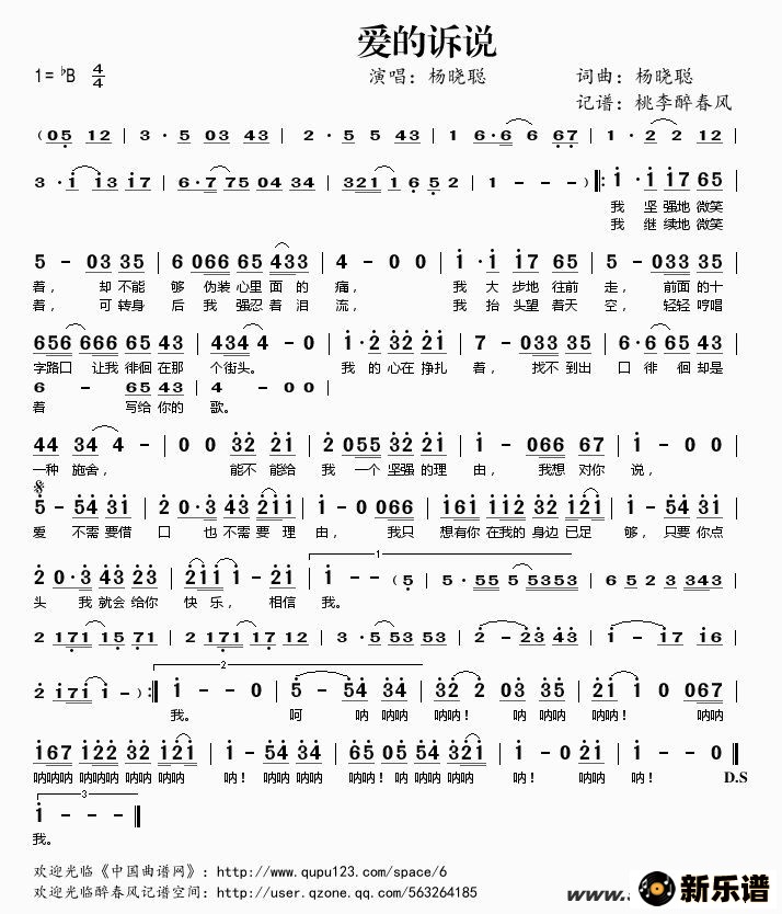 杨晓聪演唱的爱的诉说歌词,爱的诉说简谱.