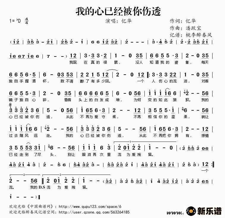 忆华演唱的我的心已经被你伤透歌词,我的心已经被你伤透简谱.