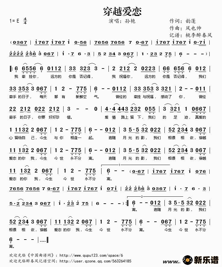 孙艳演唱的穿越爱恋歌词,穿越爱恋简谱.