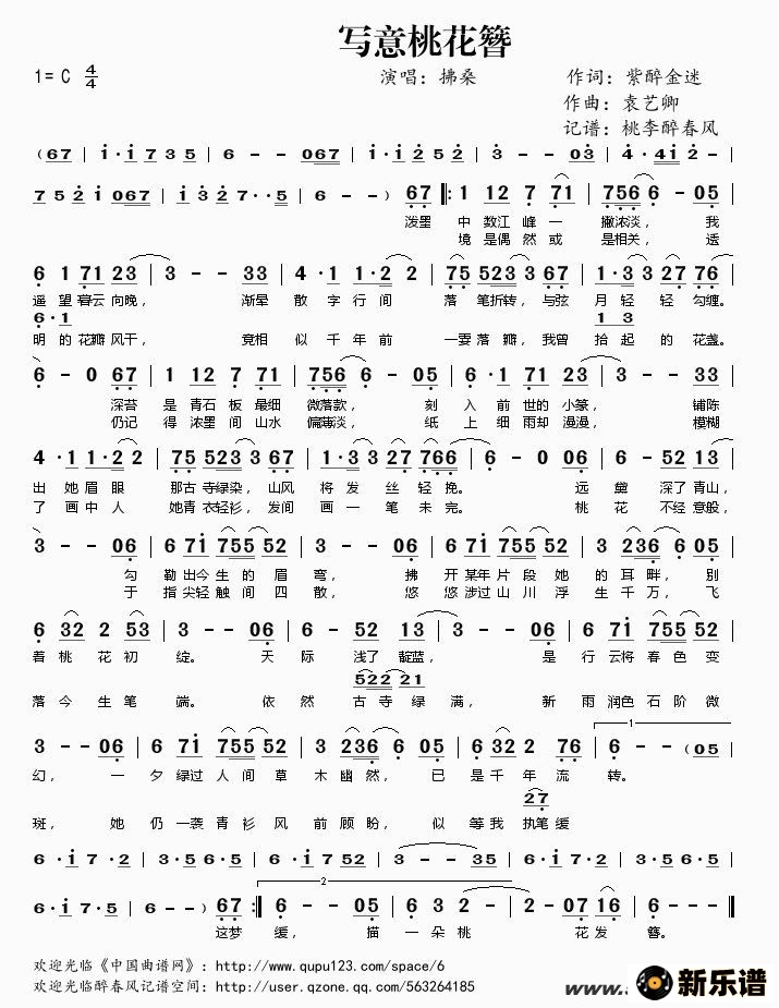 《写意桃花簪》简谱 拂桑-桃李醉春风制谱