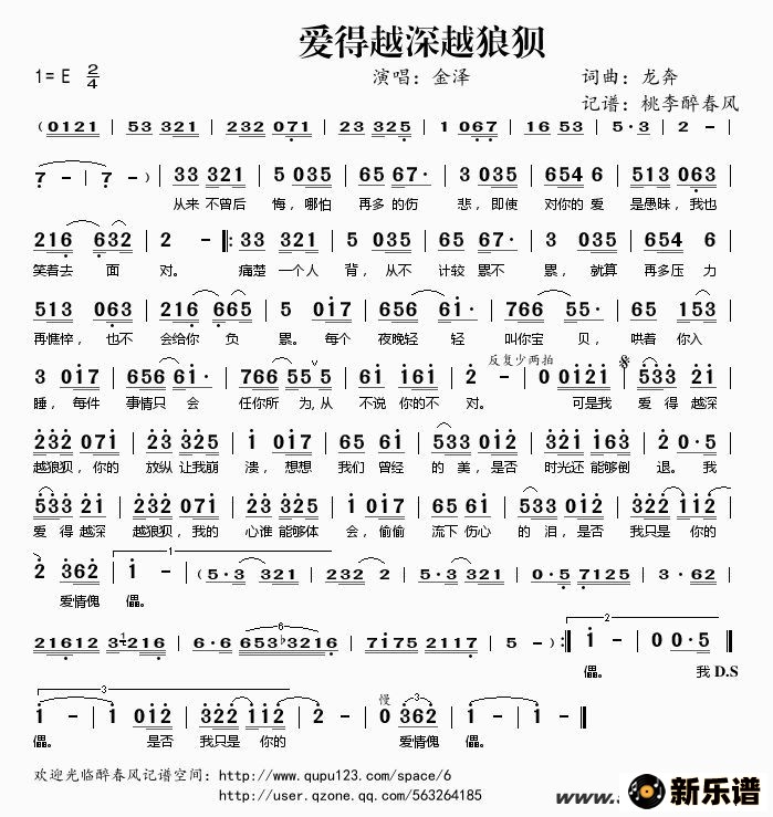《爱得越深越狼狈》简谱 金泽-桃李醉春风制谱