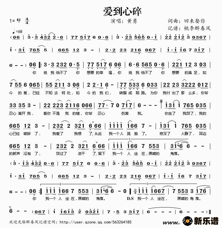 《爱到心碎》简谱 黄勇-桃李醉春风制谱