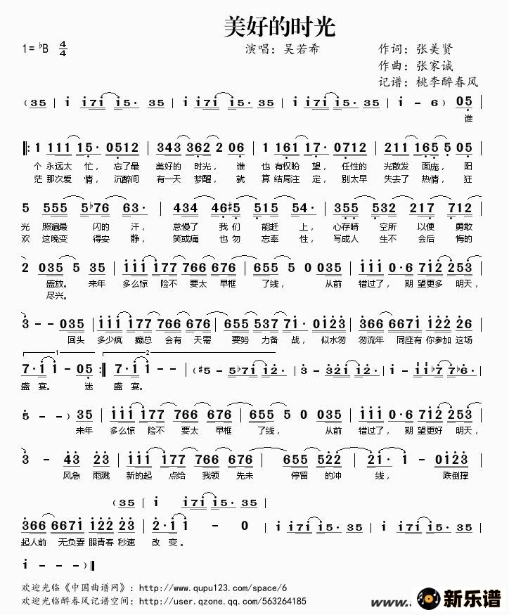 《美好的时光》简谱 吴若希-桃李醉春风制谱
