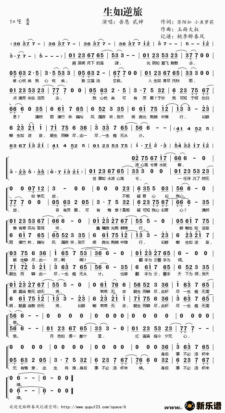《生如逆旅》简谱 吾恩/贰婶-桃李醉春风制谱