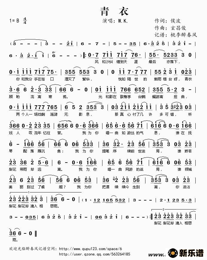 W.K.演唱的青衣歌词,青衣简谱.