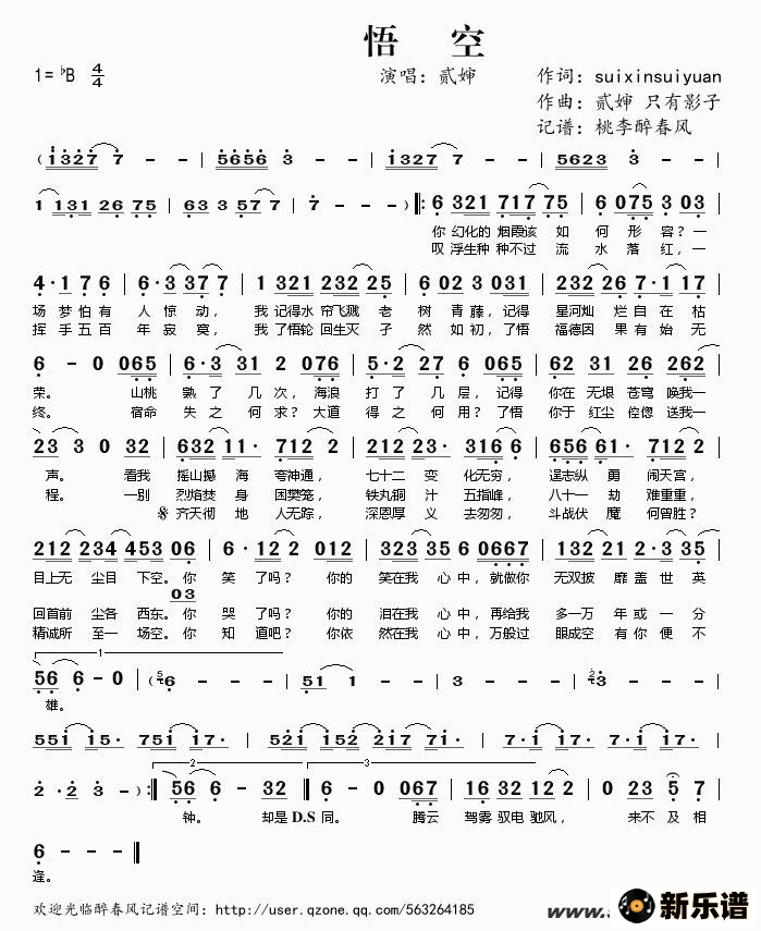 贰婶演唱的悟空歌词,悟空简谱.