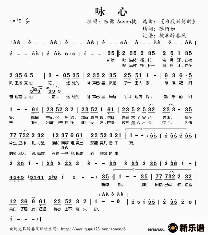 《咏心》简谱 东篱 Assen捷-桃李醉春风制谱