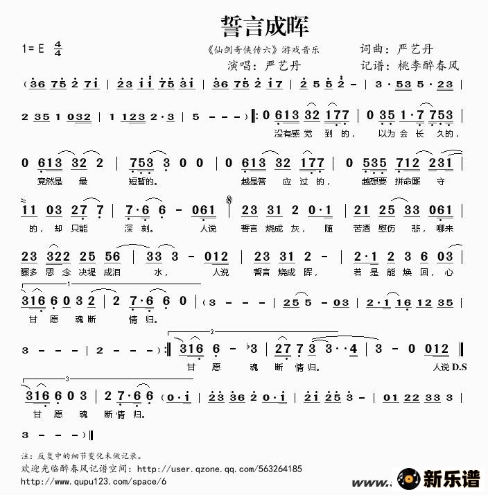 严艺丹演唱的誓言成晖歌词,誓言成晖简谱.