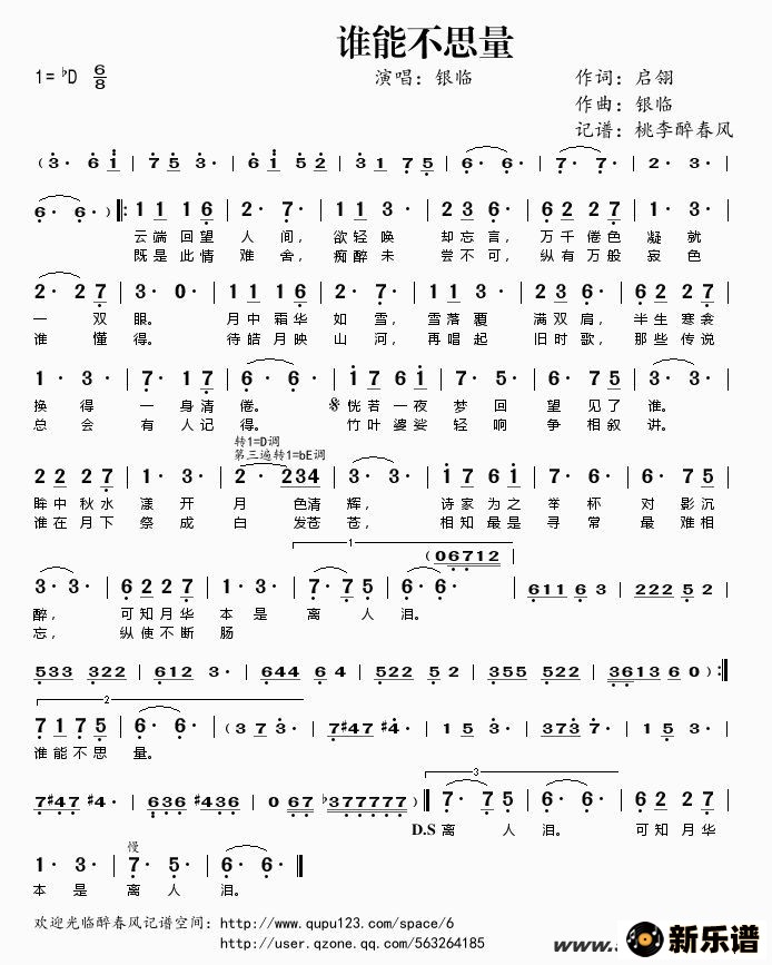 银临演唱的谁能不思量歌词,谁能不思量简谱.