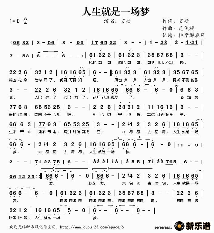 《人生就是一场梦》简谱 艾歌-桃李醉春风制谱