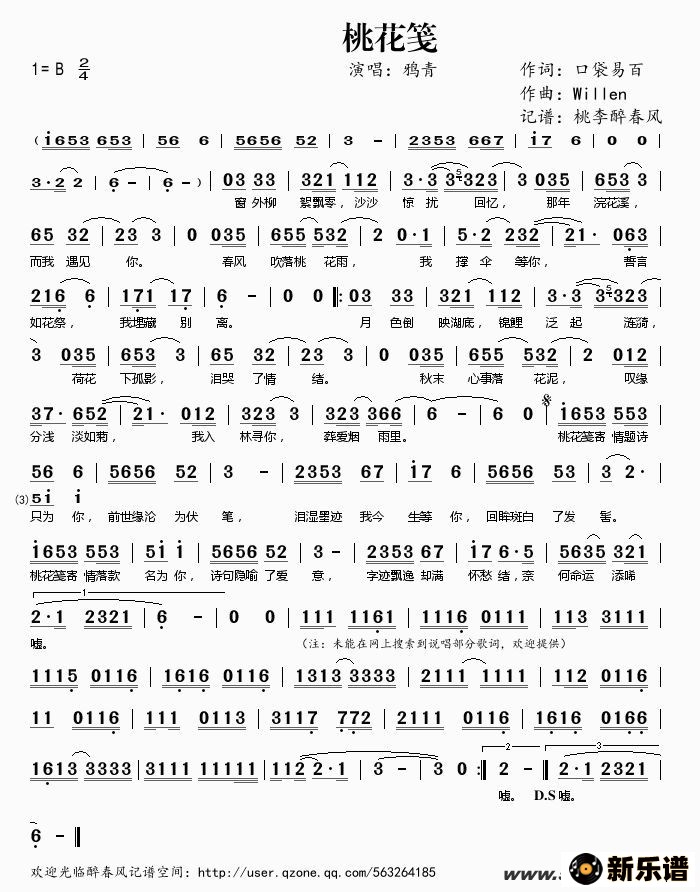 《桃花笺》简谱 鸦青-桃李醉春风制谱