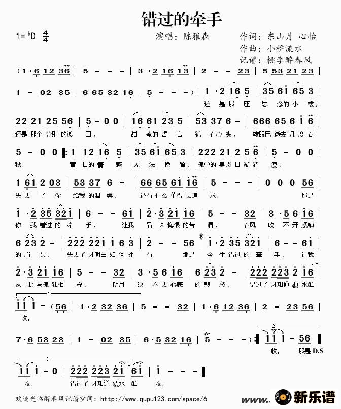 《错过的牵手》简谱 陈雅森-桃李醉春风制谱