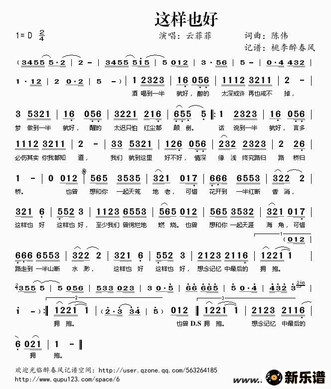 《这样也好》简谱 云菲菲-桃李醉春风制谱