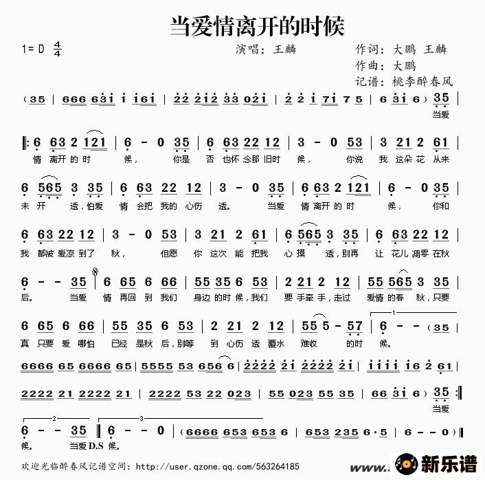 《当爱情离开的时候》简谱 王麟-桃李醉春风制谱