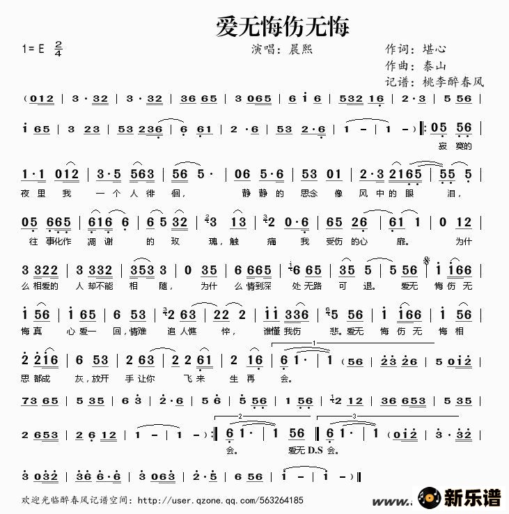 晨熙演唱的爱无悔伤无悔歌词,爱无悔伤无悔简谱.