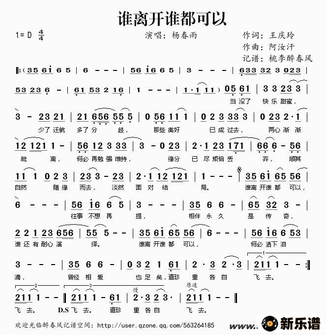 《谁离开谁都可以》简谱 杨春雨-桃李醉春风制谱