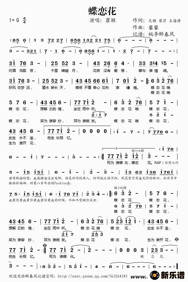 《蝶恋花》简谱 瞿颖-桃李醉春风制谱