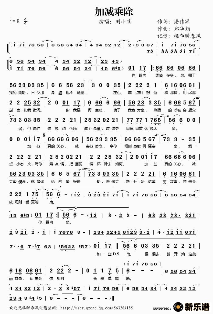 《加减乘除》简谱 刘小慧-桃李醉春风制谱