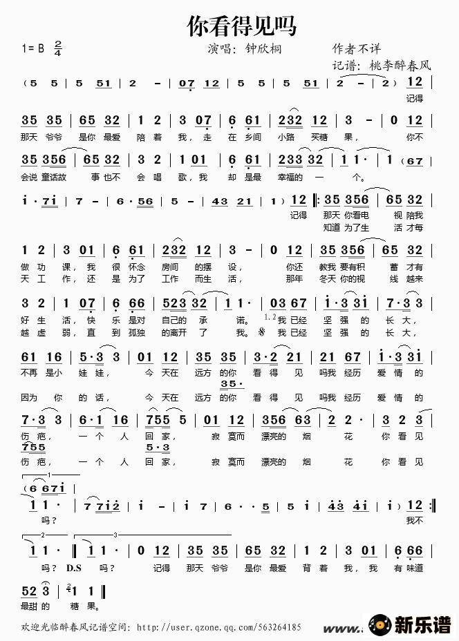 《你看得见吗》简谱 钟欣桐-桃李醉春风制谱
