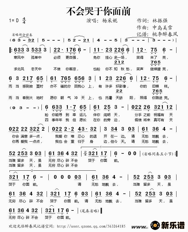 《不会哭于你面前》简谱 杨采妮-桃李醉春风制谱