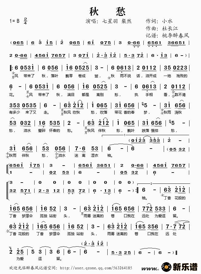《秋愁》简谱 七星羽、粲然-桃李醉春风制谱