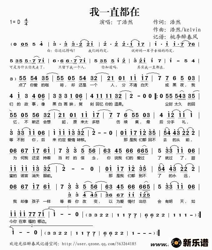 丁浩然演唱的我一直都在歌词,我一直都在简谱.