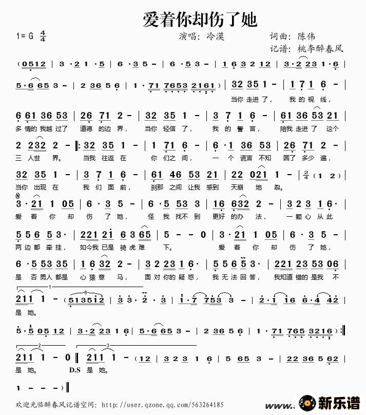 《爱着你却伤了她》简谱 冷漠-桃李醉春风制谱