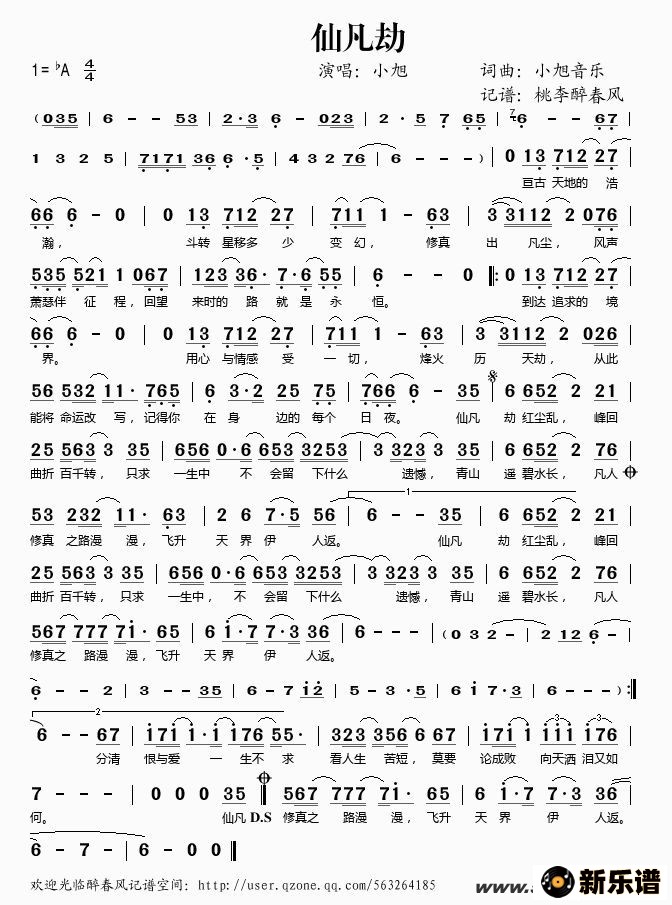 小旭演唱的仙凡劫歌词,仙凡劫简谱.