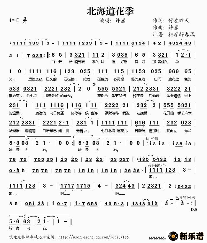 《北海道花季》简谱 许嵩-桃李醉春风制谱