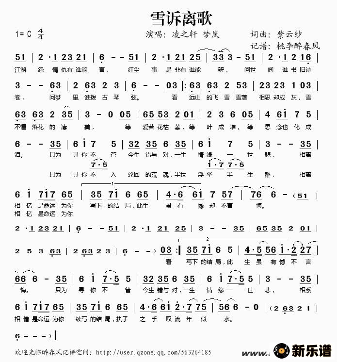 《雪诉离歌》简谱 凌之轩、梦岚-桃李醉春风制谱