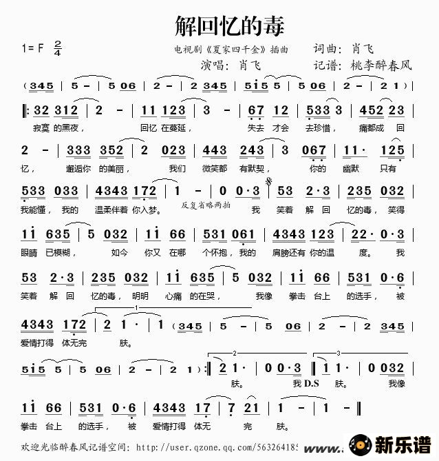 《解回忆的毒(电视剧《夏家四千金》插曲)》简谱 肖飞-桃李醉春风制谱