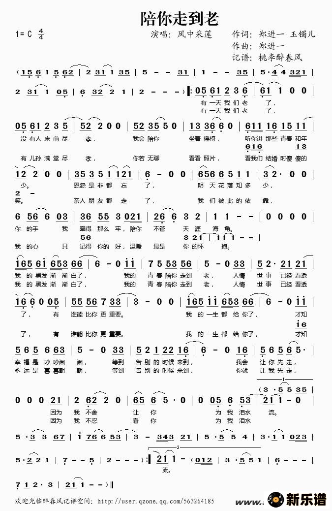 《陪你走到老》简谱 风中采莲-桃李醉春风制谱