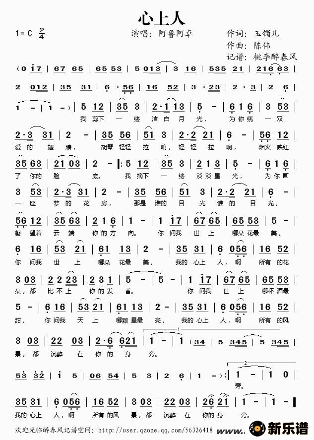 《心上人》简谱 阿鲁阿卓-桃李醉春风制谱